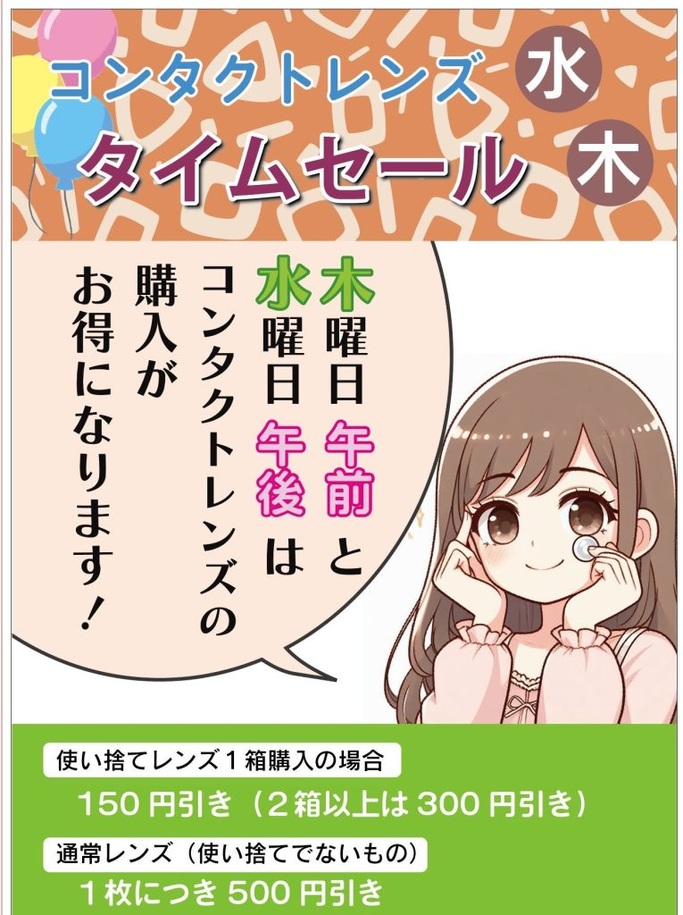 「初めてのコンタクトレンズ処方」は長時間を要するため事前(電話)予約制
